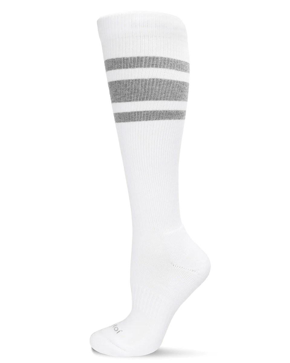 Memoi Striped Athletic Cushion Sole Knee High Cotton Blend 15-20mmhg Graduated Compression Socks