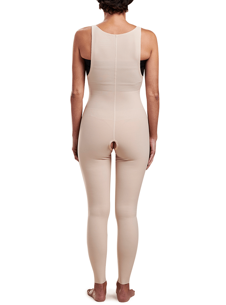 Designed with our patented fabric, the FBL2 is a zipperless girdle which features slide-adjustable shoulder straps, leg coverage to the ankle with a clean-cut finish, and an open crotch.