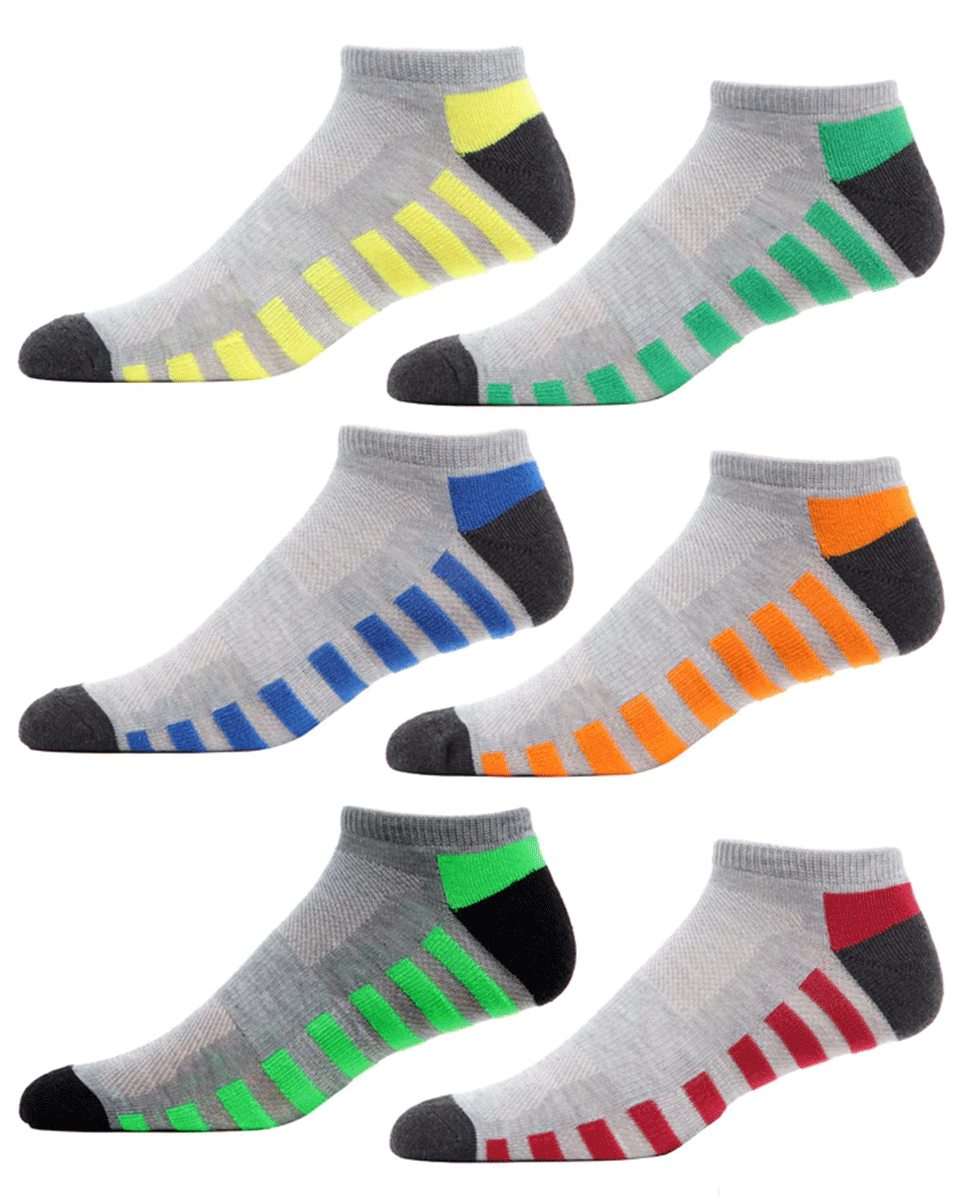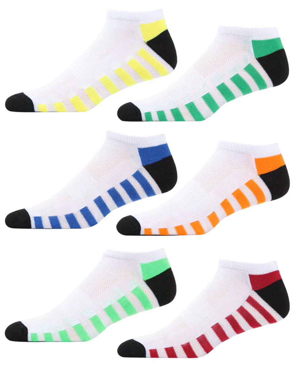 Memoi Color Track Half Cushioned Low Cut Socks 6 Pack