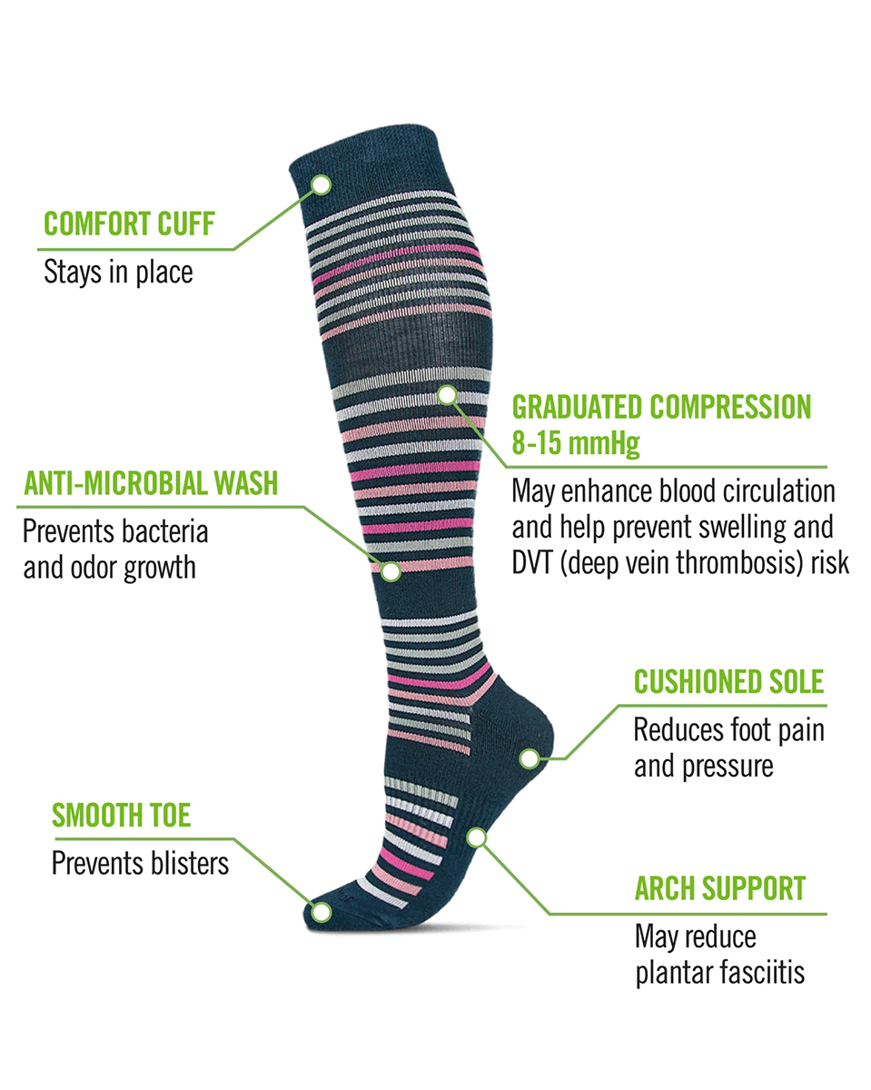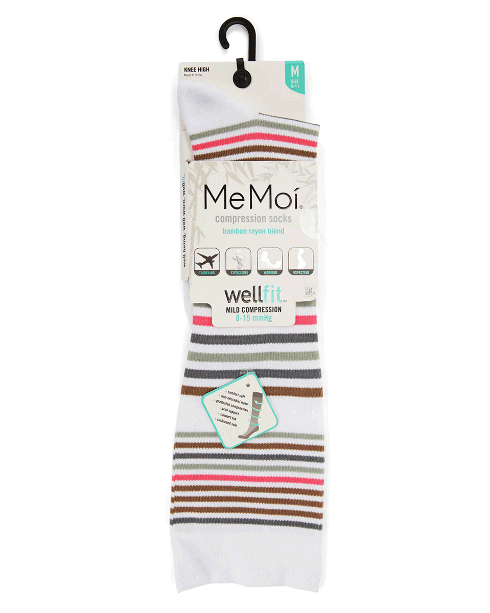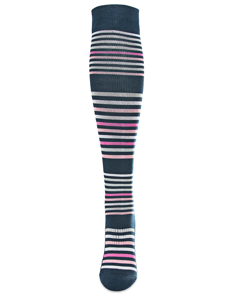 Memoi Women's Classic Stripes Knee High Bamboo Blend 8-15mmhg Graduated Compression Socks